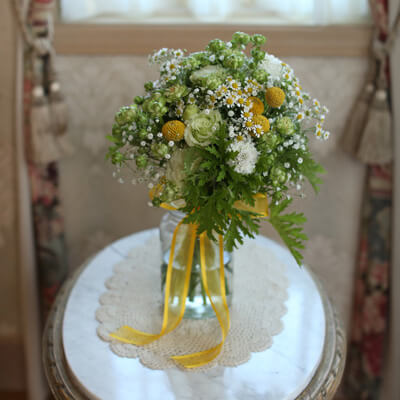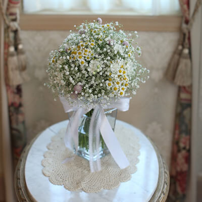 いろいろな小花を集めたナチュラルなクラッチブーケ。