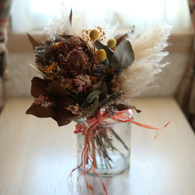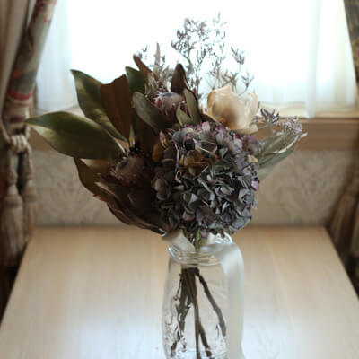 白無垢にもぴったりなおしゃれなドライフラワーのブーケ。